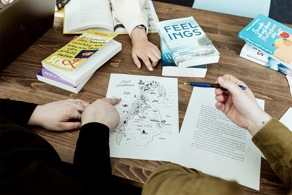 Wir begleiten deine Buchveröffentlichung vom Manuskript bis zum professionellen Buch. An deiner Seite steht ein Team aus erfahrenen Buchexpertinnen, die sich mit Textarbeit von Lektorat bis Schlusskorrektur und mit Buchgestaltung von Cover bis Buchblockdesign und Illustrationen bestens auskennen.